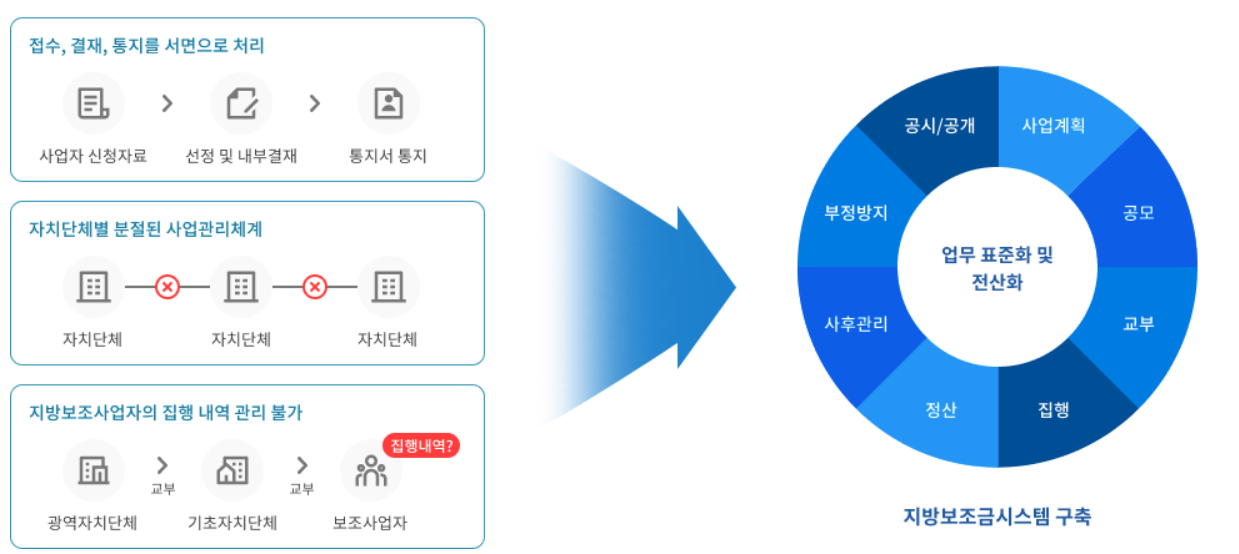 | 보조사업 등록 | 지자체 공무원 | 사업 계획 입력, 예산 배정 | 회계연도 시작 전 |